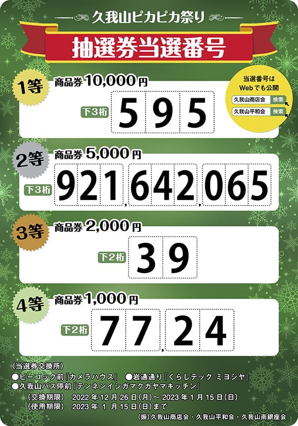 ご当選された抽選券の商品券への交換、商品券の使用期限は2023年1月15日(日)までですのでご注意ください。
